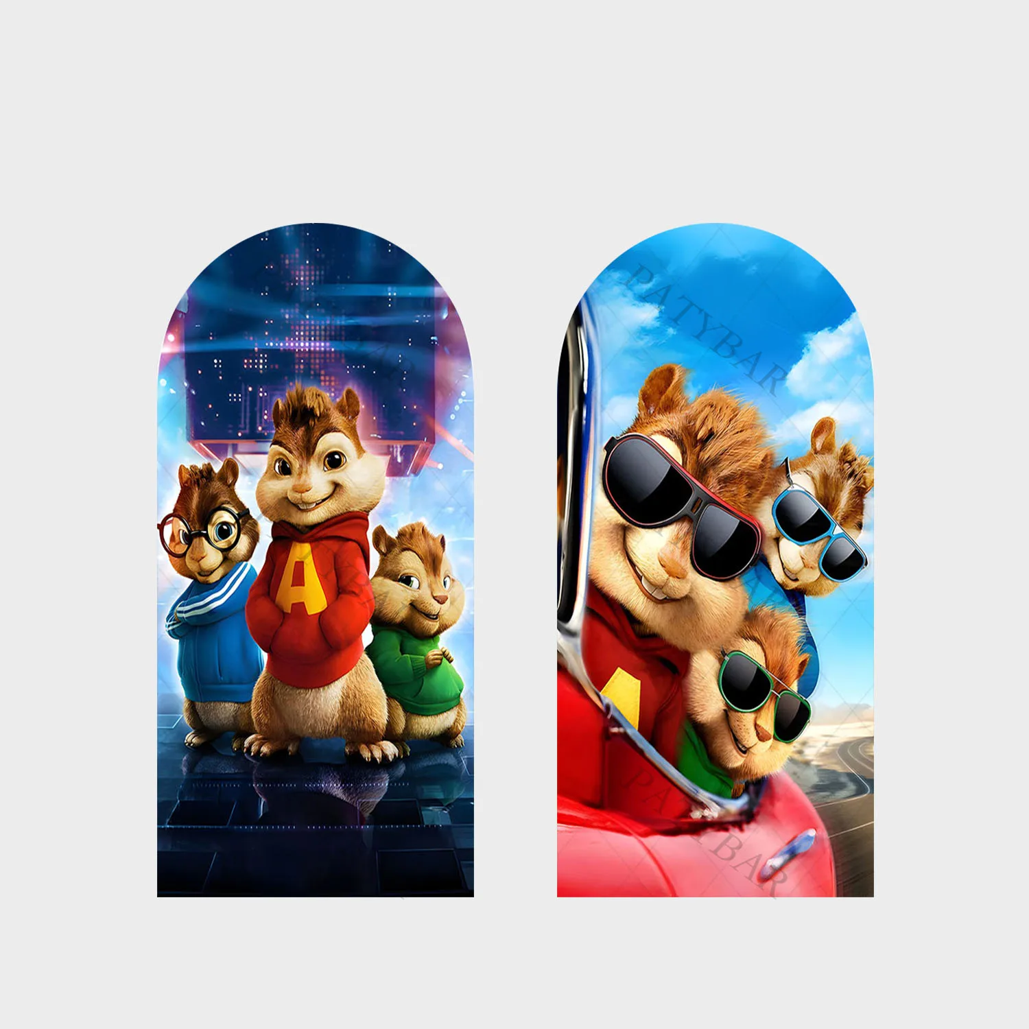 Arco decorativo per feste di compleanno a tema Alvin e i Chipmunk (Simon, Theodore) per bambini, in poliestere, per sfondo fotografico
