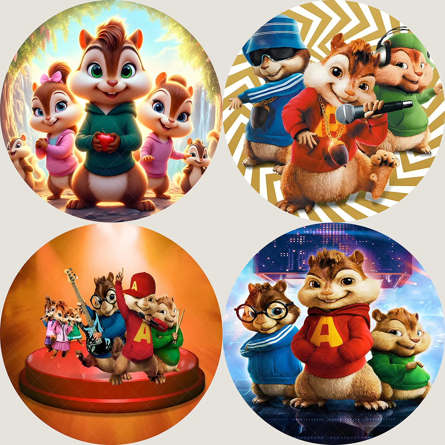 Sfondo rotondo Alvin e Chipmunks Simon Theodore Sfondo compleanno per bambini Cerchio Fotografia Banner Decorazione Puntelli