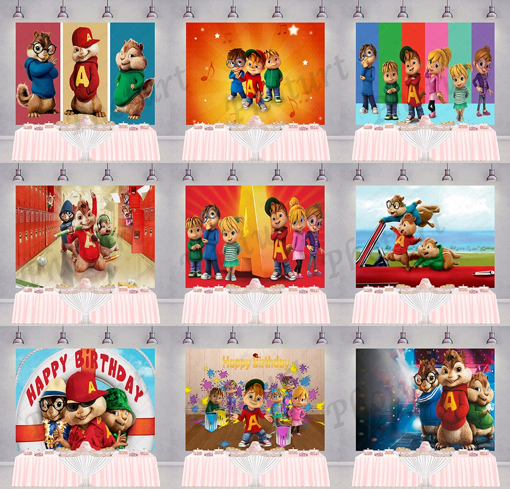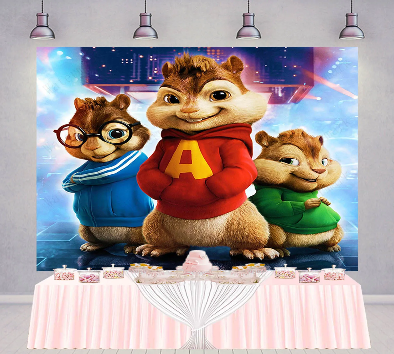 Disney Cartoon Alvin and Chipmunk Simon Theodore Kid Birthday Party Backdrop Custom Kid Room Photography Poster Decor Background