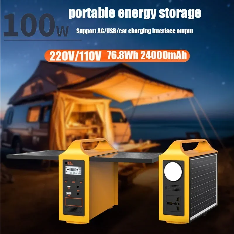 Stazione di Alimentazione Portatile 100W 76.8WH Generatore Solare per Campeggio con Pannello Solare Power Bank 24000mAh LED per Campeggio