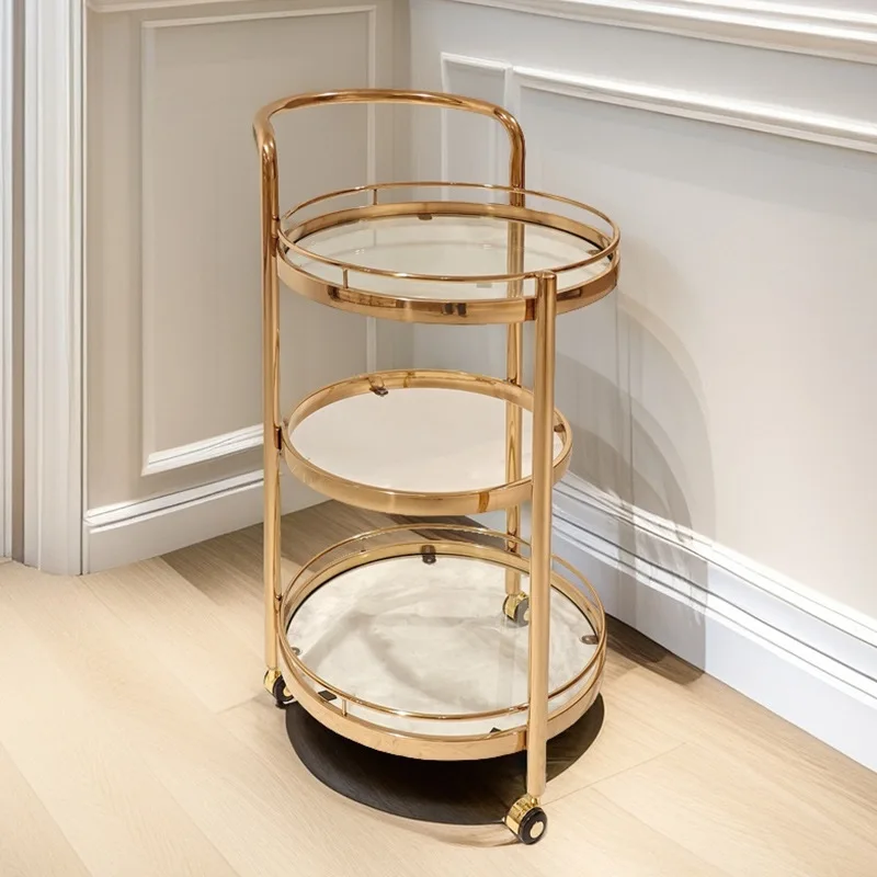 Carrello per vino mobile rotondo a tre strati per il servizio di carte per scacchi da tè KTV del ristorante dell'hotel - Carrello da bar per catering alimentare