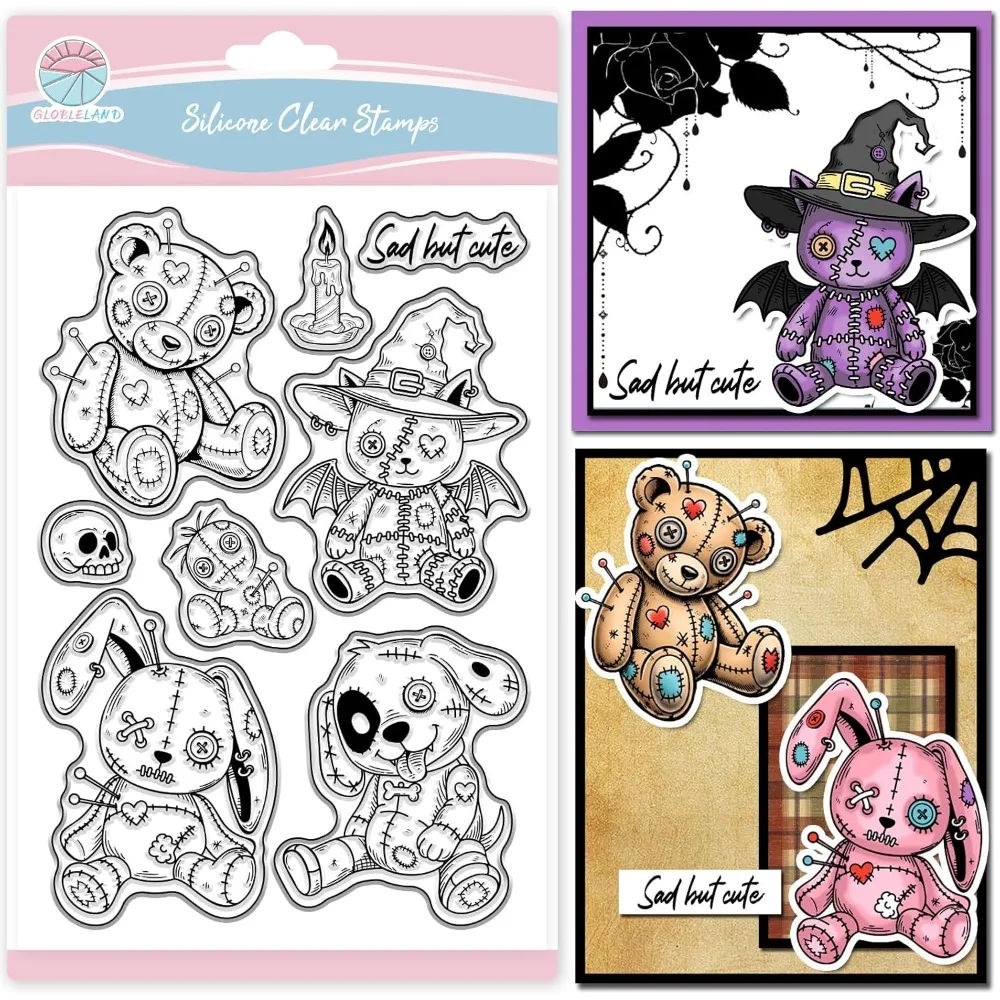 1PC Halloween Bambole Voodoo Timbri Trasparenti per la Creazione di Carte e Journaling Voodoo Orso Timbro Trasparente Bambole Gotiche