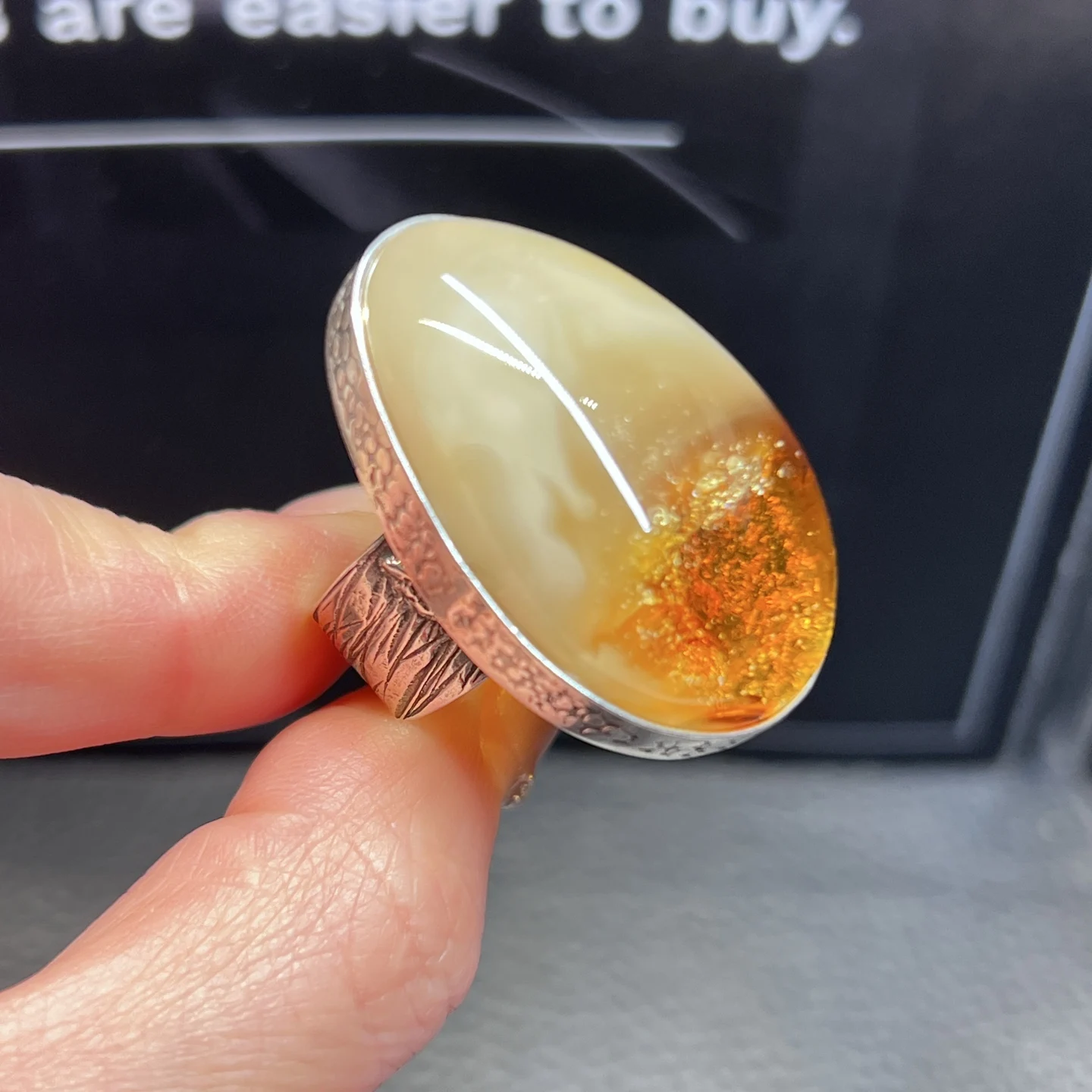 Anello regolabile in ambra gialla naturale 35,7x22,1 mm, gioiello in argento sterling 925 con gemma di ambra per donna e uomo AAAAA