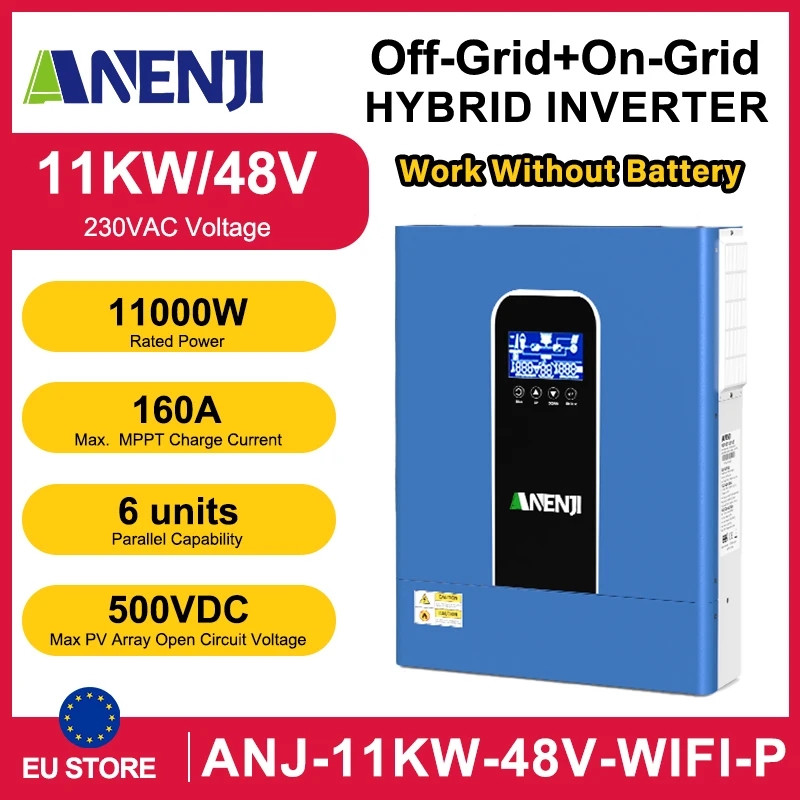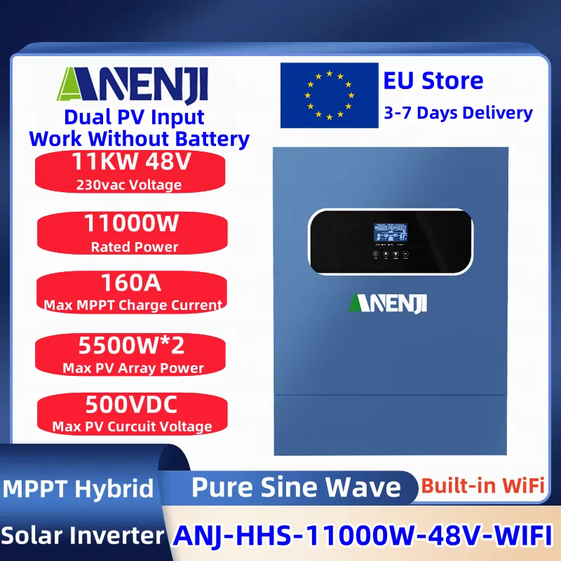 ANENJI 11KW Inverter solari ibridi 48V 220V MPPT 160A Inverter Wifi parallelo 6 Max inverter solare ibrido per pannello solare fotovoltaico