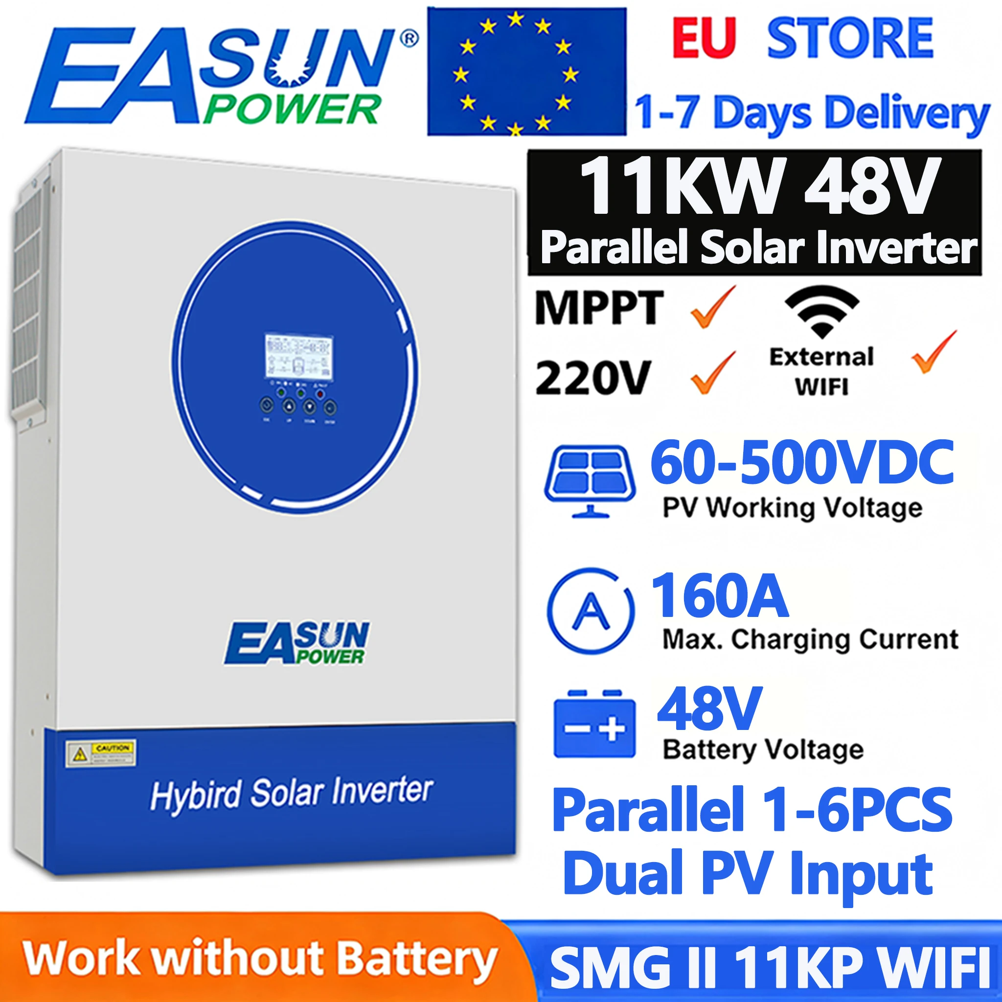 EASUN 11KW Convertitore solare ibrido 48V 220V Convertitore sinusoidale puro 160A MPPT Caricatore solare Doppia ingresso fotovoltaico con supporto WIFI parallelo
