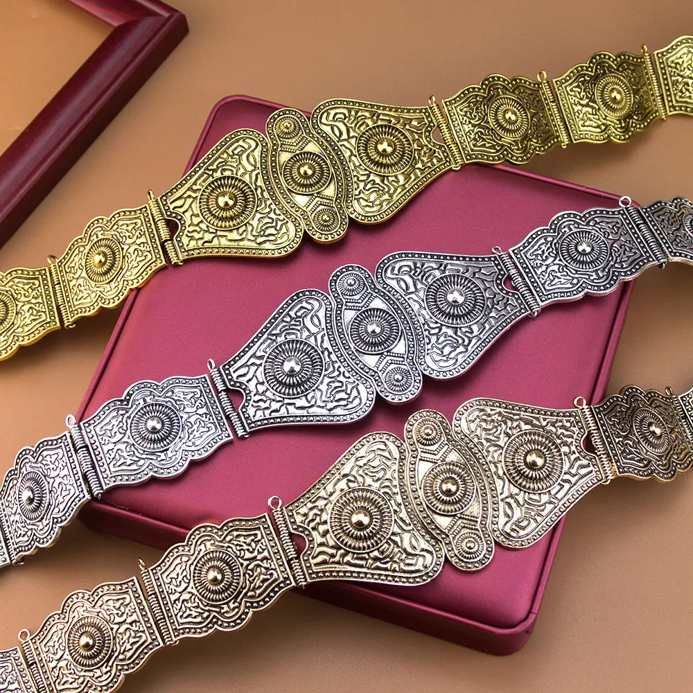 Cintura vintage retrò del Caucaso per donna modello in rilievo decorazione rivetto Turchi cintura in metallo catena lunghezza regolabile