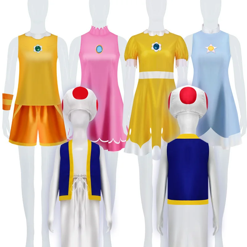 CosDaddy Principessa Peach Costume Cosplay Abito rosa Adulto Rosalina Corona blu Abiti Bambini Halloween NM35