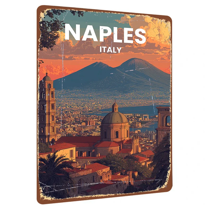 Naples Italia Paesaggio urbano Arte da parete in metallo Vulcano vintage Vista mare Pittura decorativa per la casa