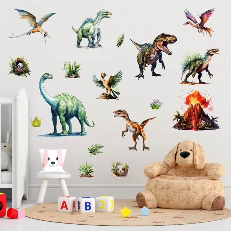 Adesivo da parete con vulcano e pterosauro, decorazione per la casa, stile antico