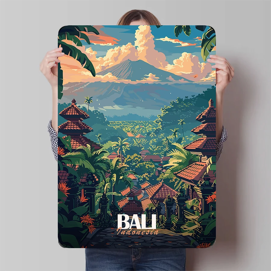 Bali tradizionale tempio e vulcano paesaggio personalizzato in metallo wall art decorazione per la casa in stile sud-est asiatico