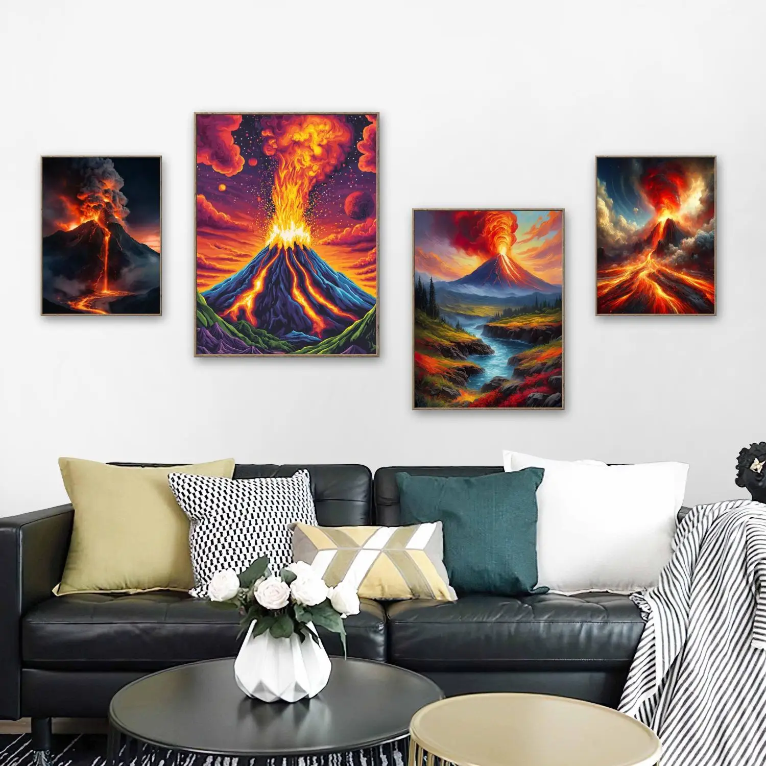 Pittura a olio digitale Vulcano Pittura a olio fai da te Eruzione vulcanica Monte Fuji Immagine dipinta Decorazione della parete di casa Artigianato creativo