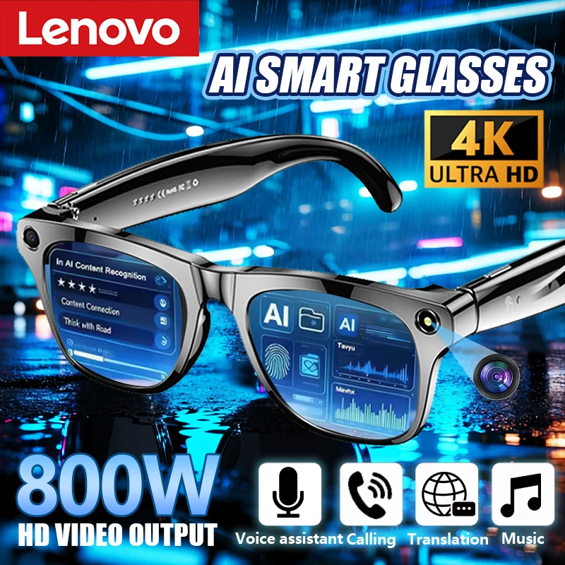 Occhiali Smart Lenovo 4K HD AI con Fotocamera 800MP, Fotocromatici, Multifunzione per Chiamate, Foto, Video, ChatGPT, Musica e Traduzione