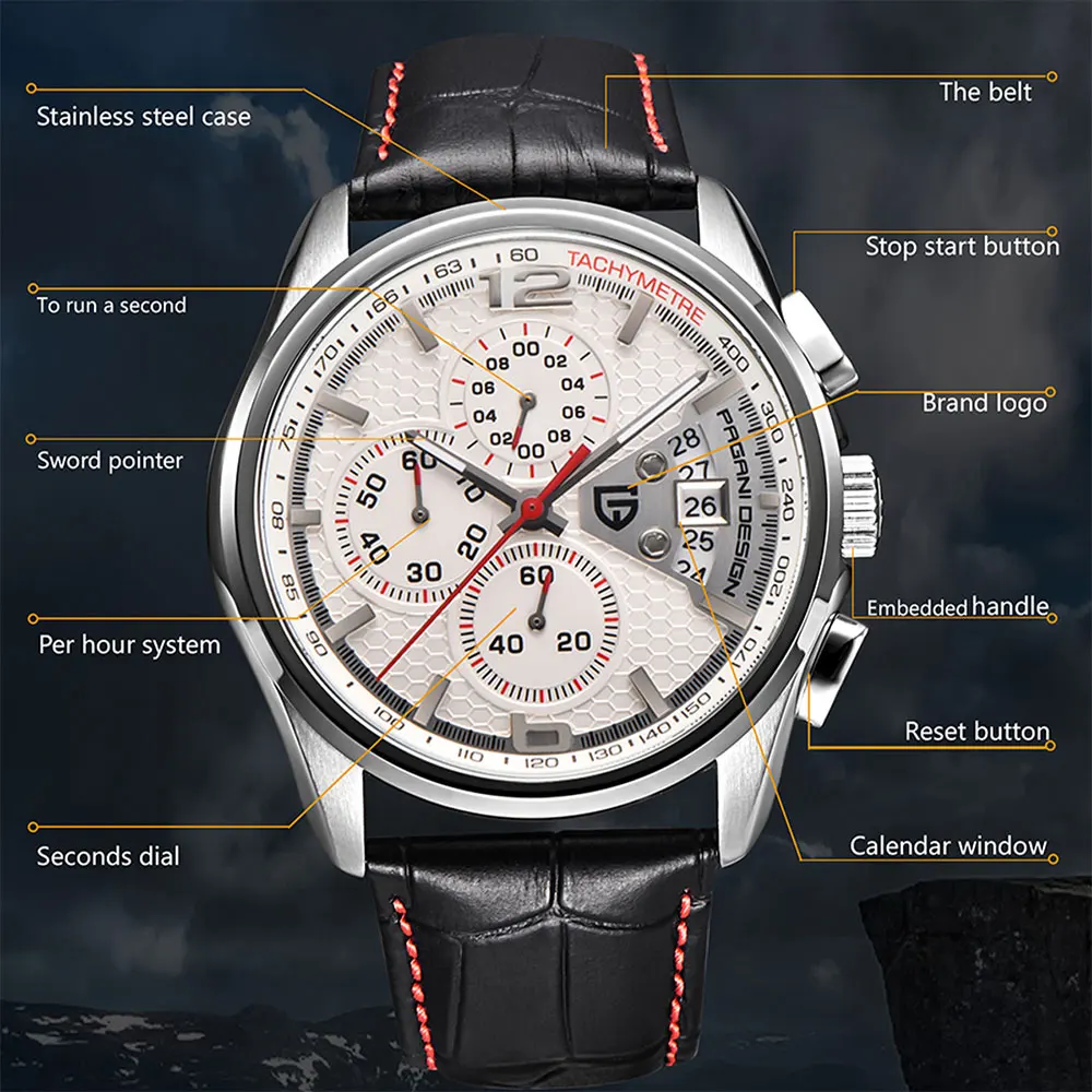 PAGANI DESIGN Nuovo orologio cronografo di lusso da uomo Orologio al quarzo di marca superiore Vetro zaffiro Cronografo S impermeabile in acciaio inossidabile