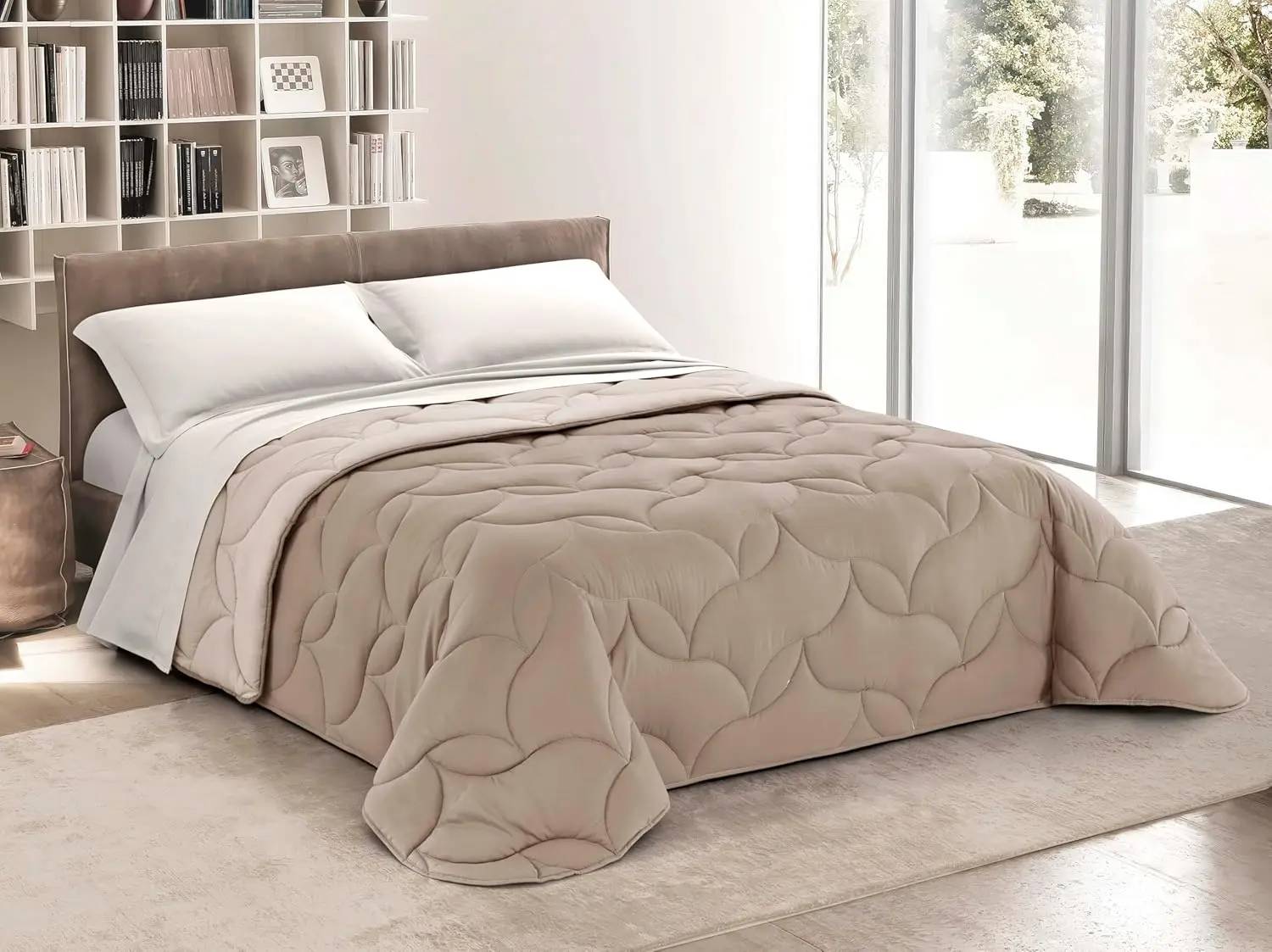 Dubbel winterdekbed Effen dubbelzijdig gewatteerd 300 g/m2 Zacht warm gewatteerd beddekbed Elegance Mod. Tweekleurige crème taupe