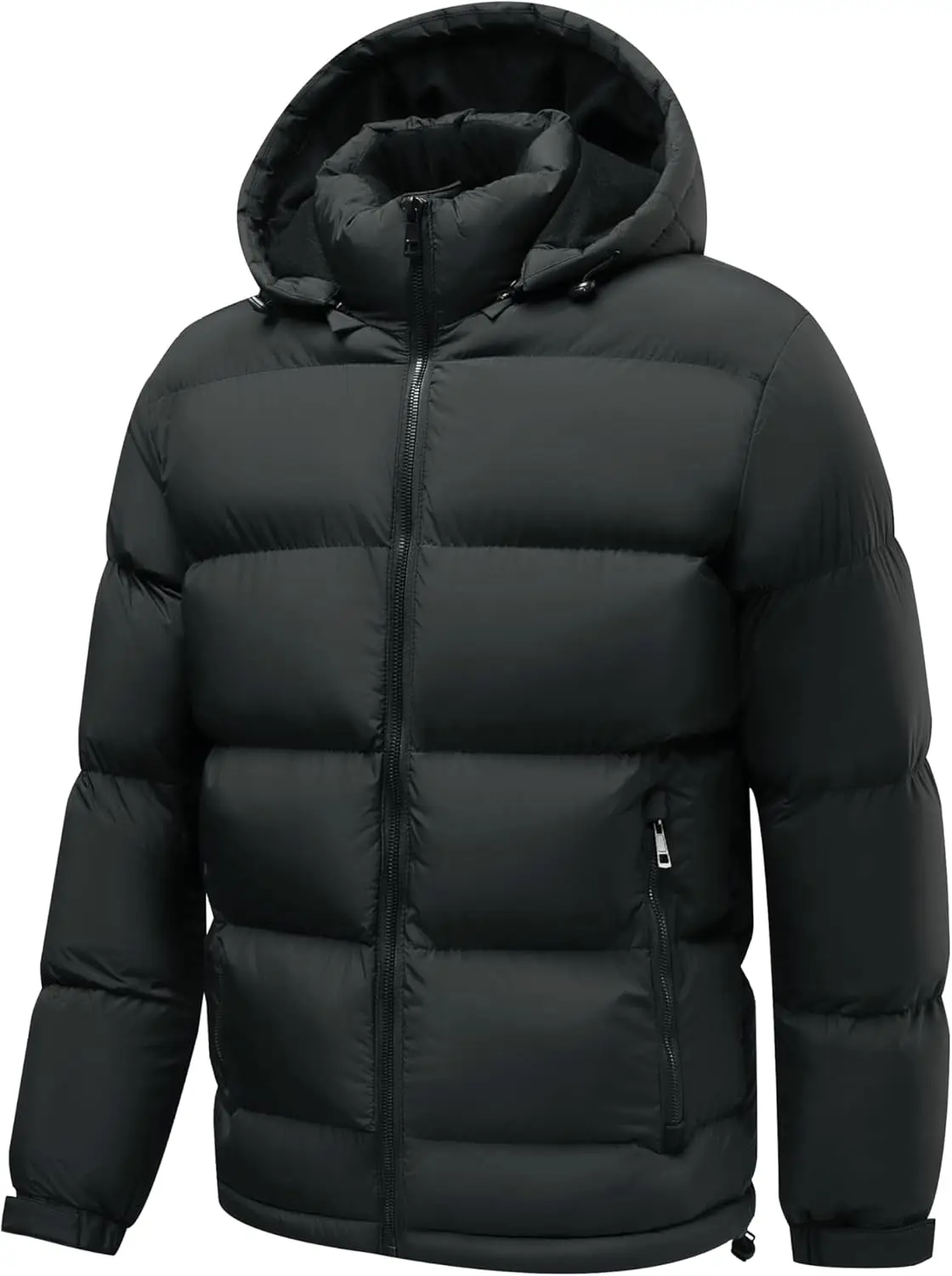 2803 Winterdonsjack voor heren, effen kleur, afneembare capuchon