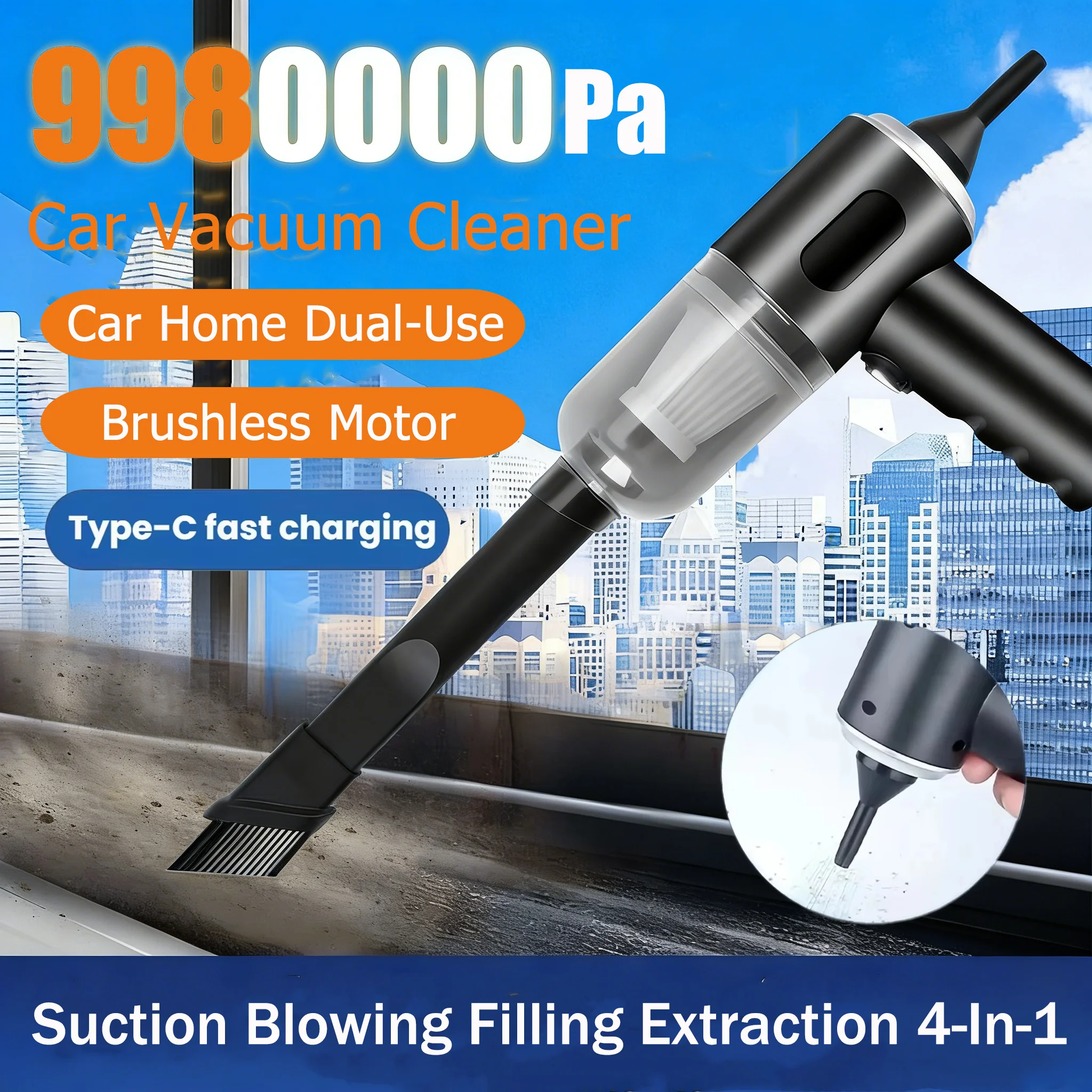 Draadloze 9980000Pa Auto Stofzuiger Geïntegreerde Zuigkracht Blazen Handheld Vacuüm Krachtige Stofzuiger Voor Thuis Auto 2026 Nieuwe