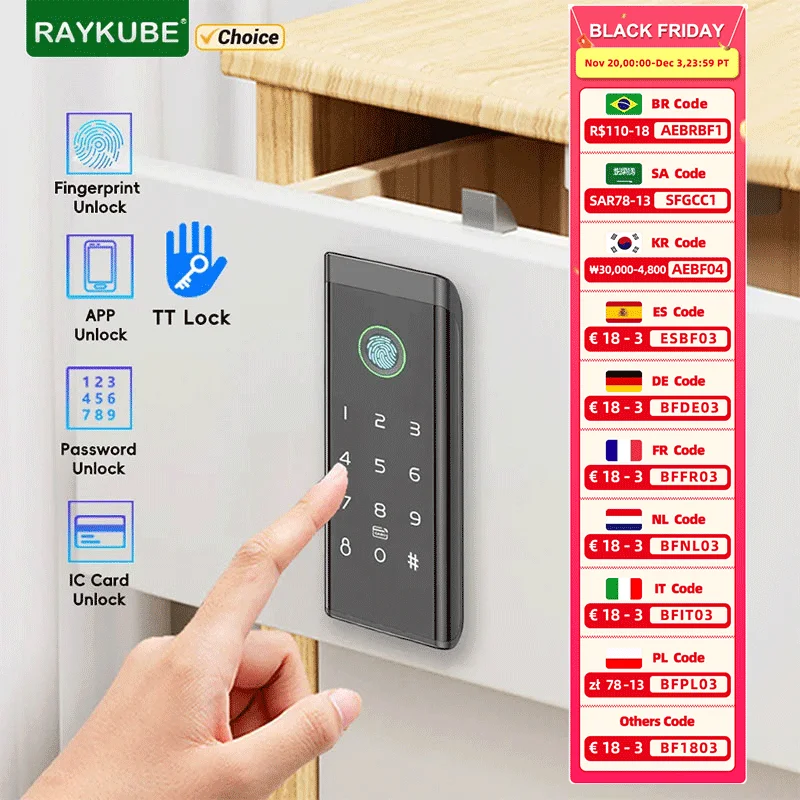 RAYKUBE TT Lock Bluetooth Keyless Intelligent Houten Vingerafdruk Kastslot Digitaal Elektrisch Ladeslot voor Gym/Thuisopslag