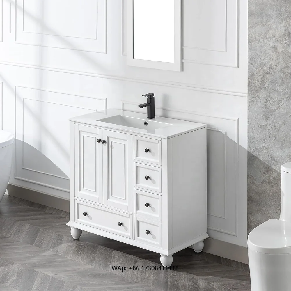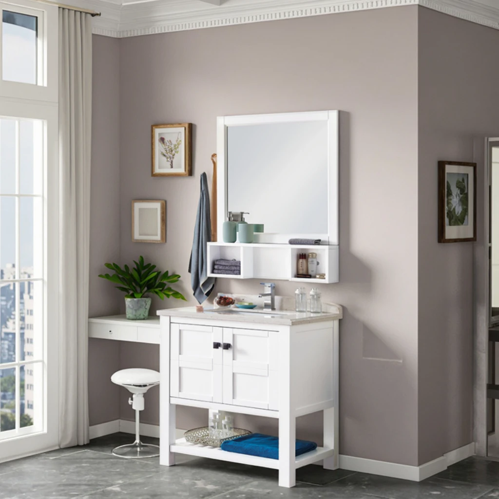 Melkwitte badkamerkastcombinatie roestvrijstalen boog inductieverlichting keramische wastafel