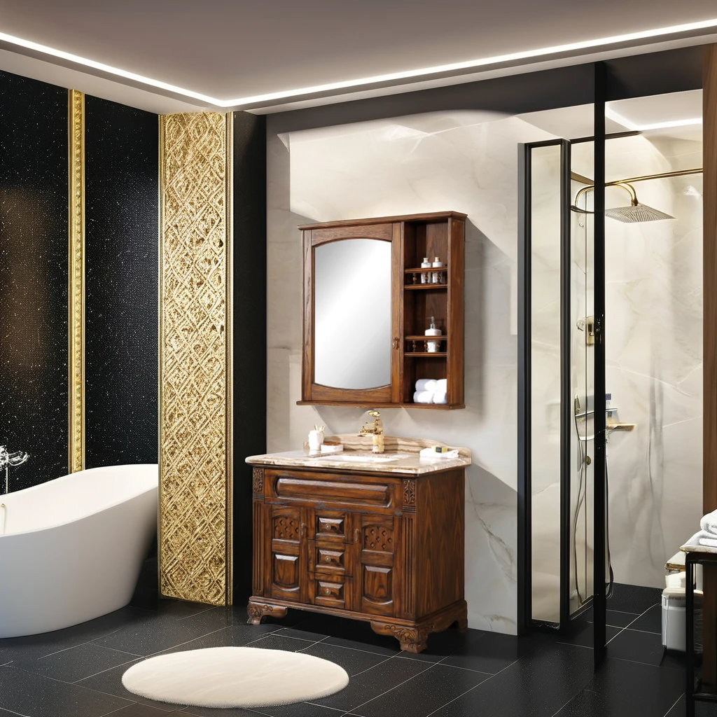 High-end rotsplaat slimme badkamerkast badkamer massief houten badkamerkast combinatie wastafel