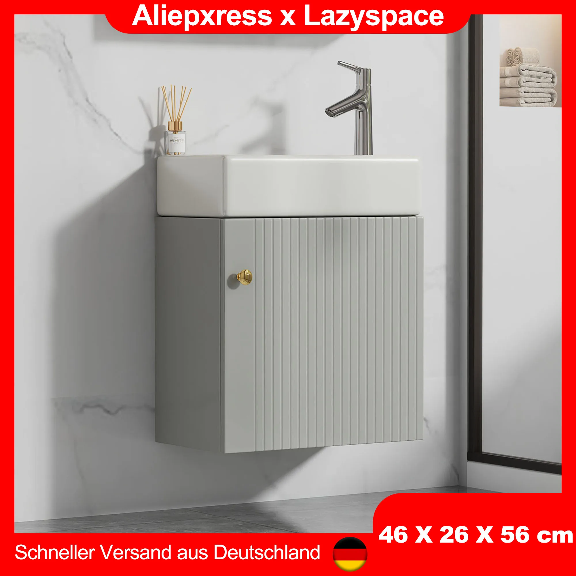Lazyspace Wastafel met Wastafel Onderkast 46 cm, Badkamermeubel voor kleine gasten, Hangende Wastafel Onderkast