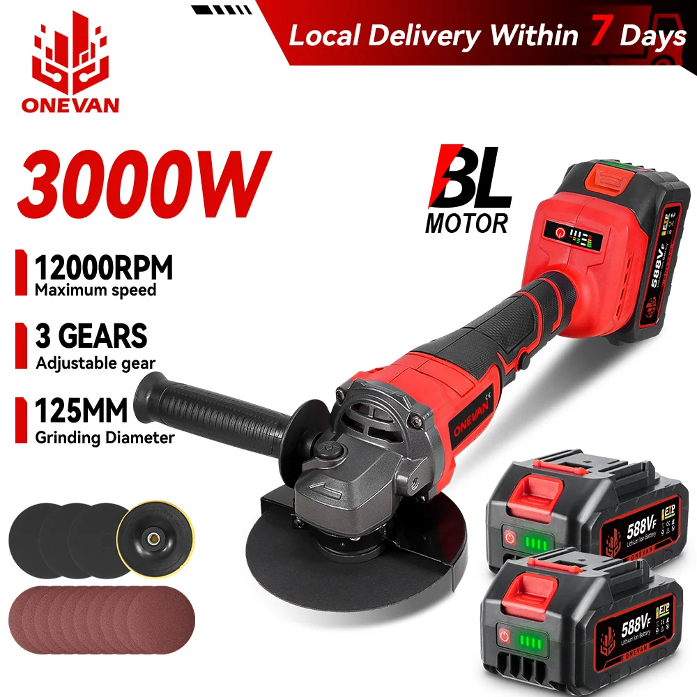 ONEVAN 125mm Borstelloze Elektrische Slijptol Variabele Snelheid Slijpmachine Houtbewerkingsgereedschap Voor Makita 18 Volt Accu