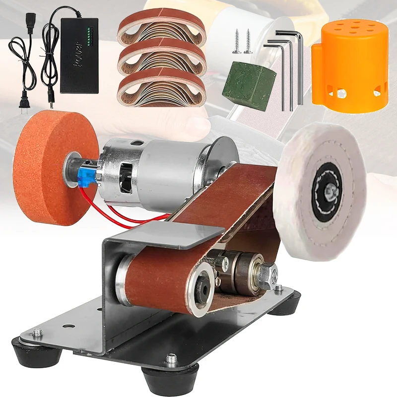 Standbandschuurmachine, 350 W stationaire slijpmachine, verstelbare hoek, micro-elektrische bandschuurmachine met 10-delige schuurbanden
