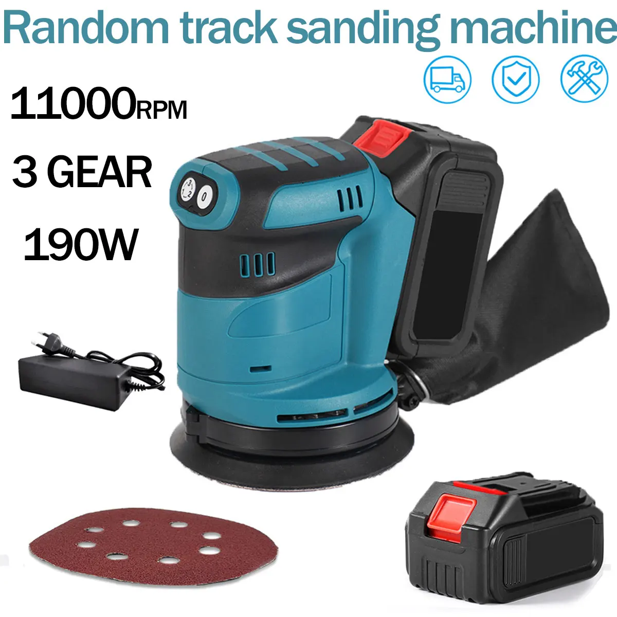5 Inch Elektrische Schuurmachine Polijstmachine 3 Versnellingen Handheld Oplaadbare Orbital Hout Metaal Polijstmachine Voor Makita 18V Batterij pin