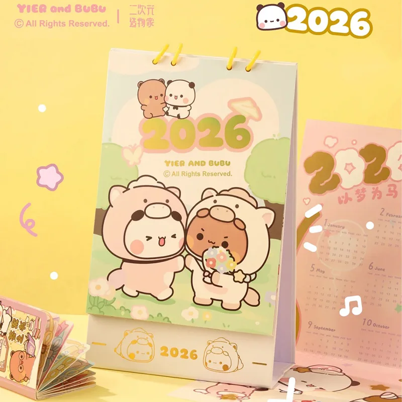 Cartoon Yier en Bubu, schattige Yier Bubu, bureaukalender, januari 2026-december 2027 kantoor woonkamer, slaapkamer ornament