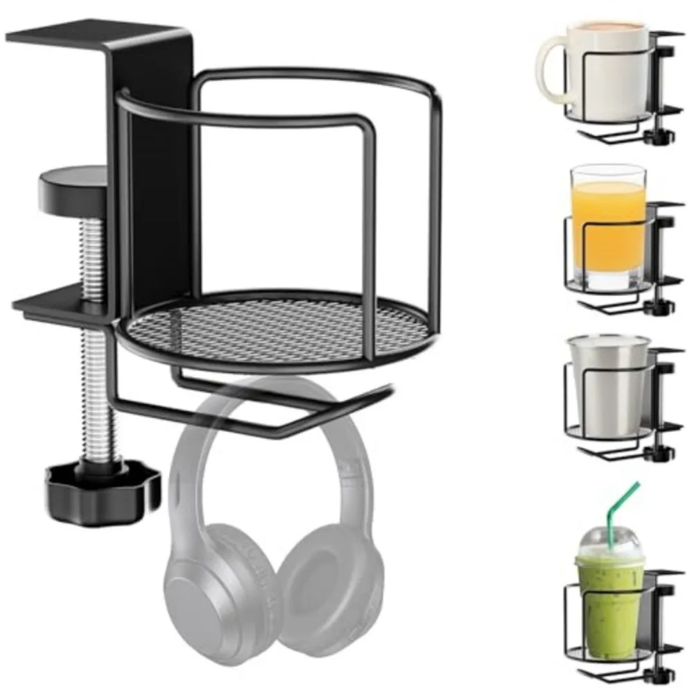 2-in-1 verstelbare bureau bekerhouder anti-lek fleshouder klem op tafel bekerhaak drinkhouder met hoofdtelefoonhouder