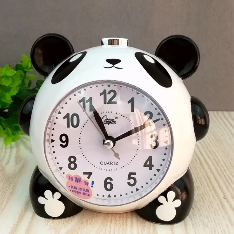 Cartoon Panda Wekker Mute Klok Nachtlampje Studenten Kinderen Bed Hoofd Wekker