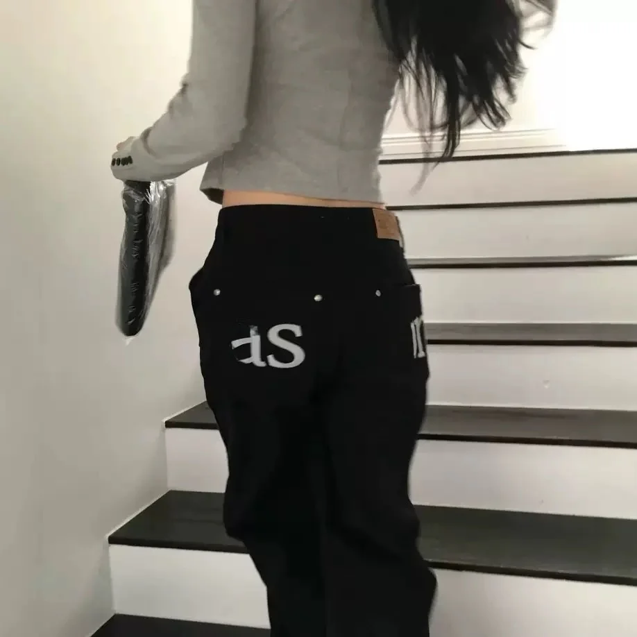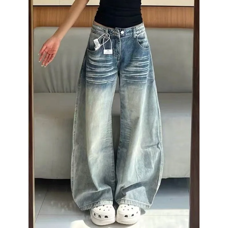 Retro Amerikaanse stijl wijde pijpen jeans dames gewassen 3D slim straight design trendy broek voorjaarsseizoen