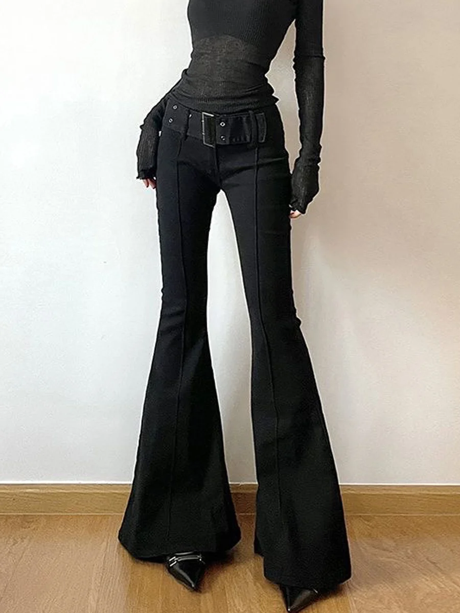 Lage taille, gedrapeerde micro-uitlopende broek, dames zomer nieuwe stijlvolle, met riem, slankende, zwarte, casual, lange jeans