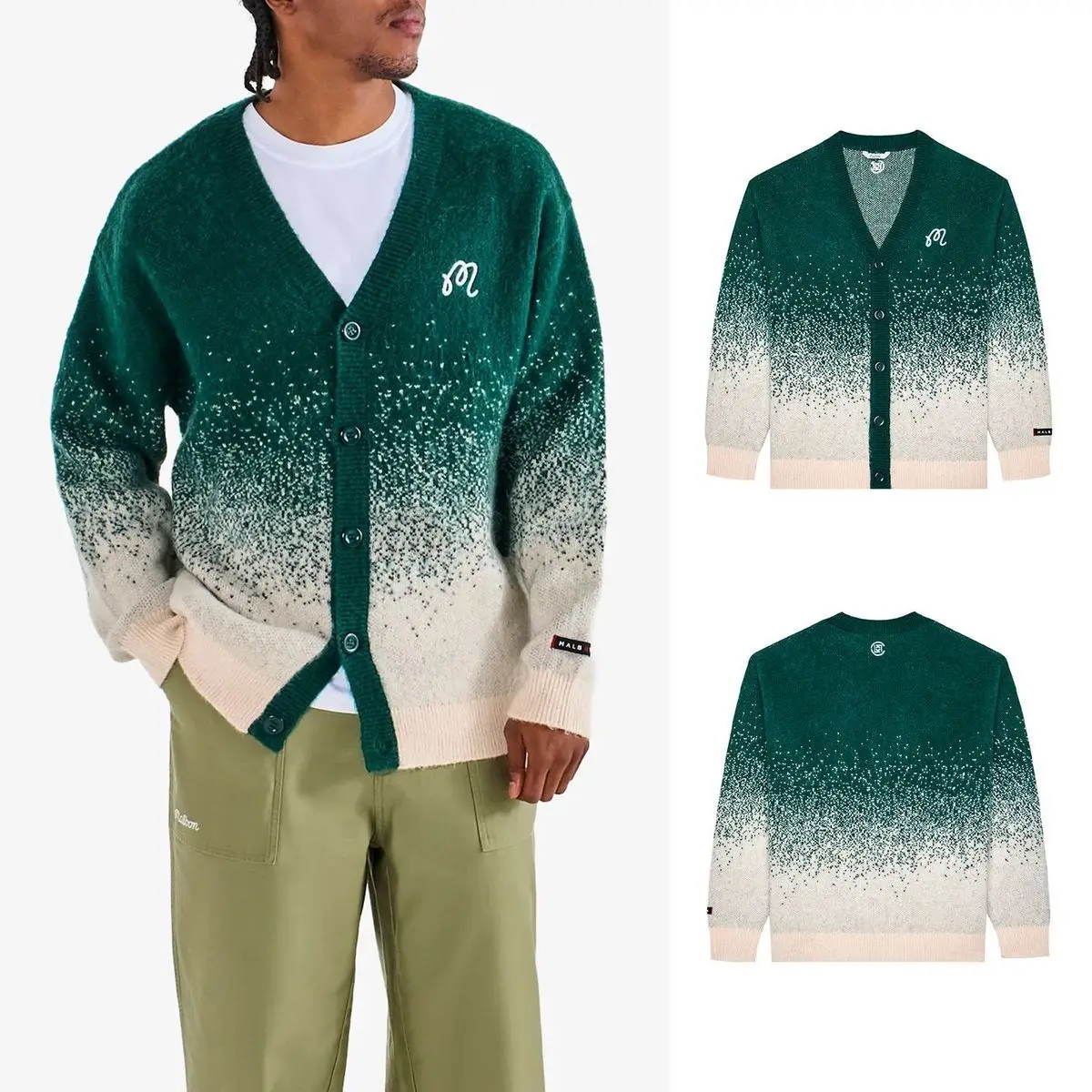 Gradiëntgroen vest voor heren - Oversized gebreide trui met V-hals, casual loungekleding met open voorkant