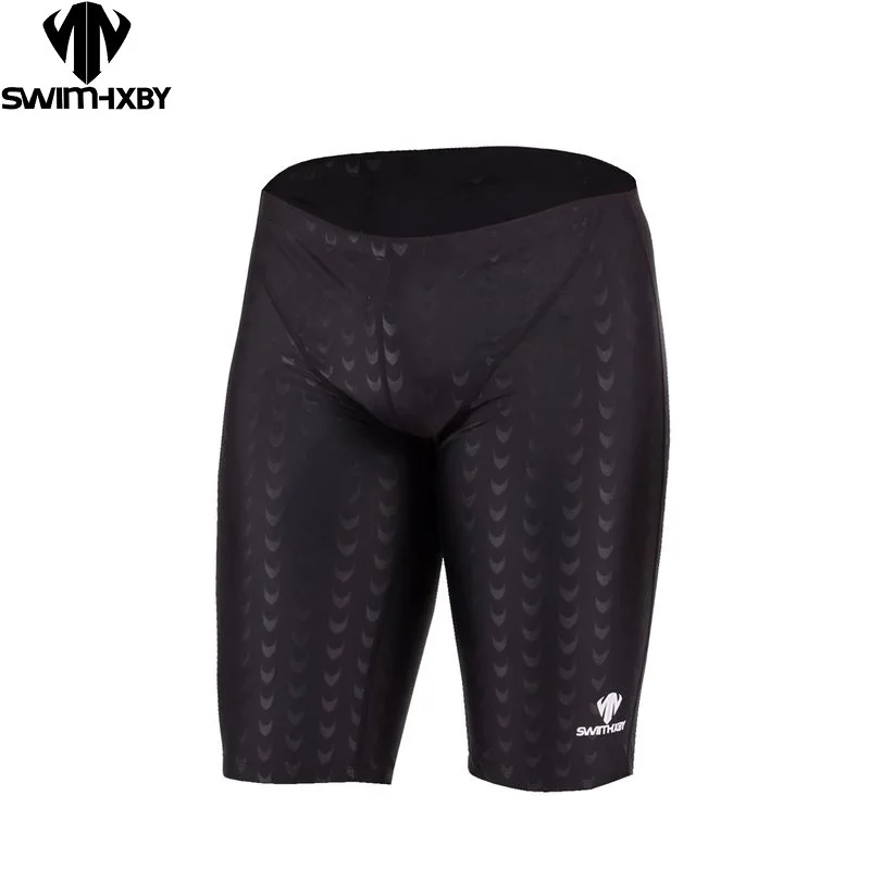 Professionele racezwembroek voor heren, chloorbestendige stof, hoge elasticiteit, knielengte, zwemstoorzender