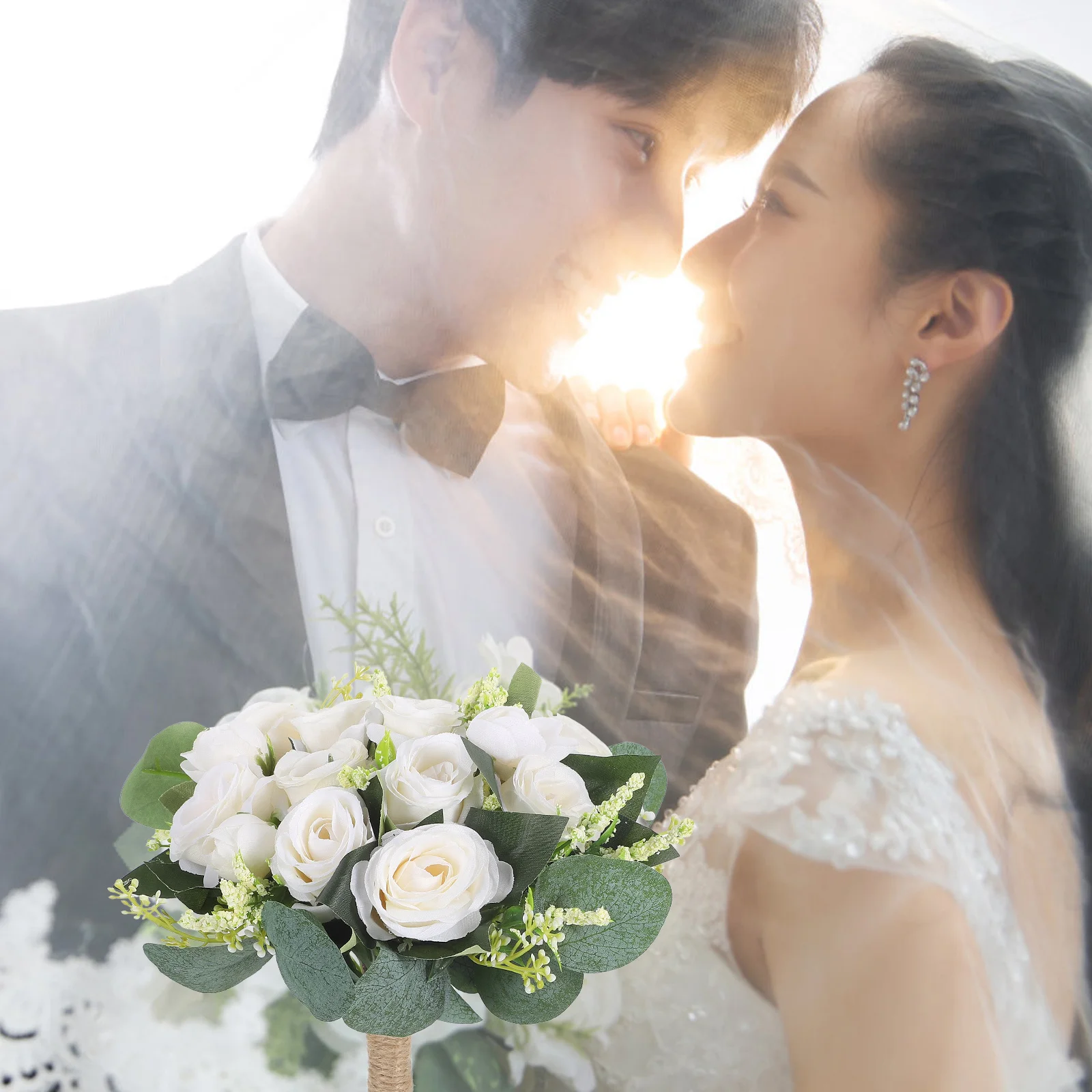 1 stks bruiloft handboeket bruid eucalyptus blad ceremonie kunstmatige nep bloemen romantische rozen bruiloft benodigdheden