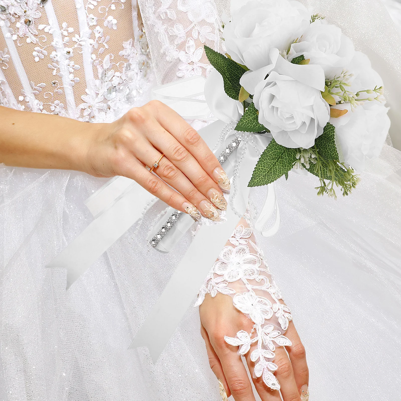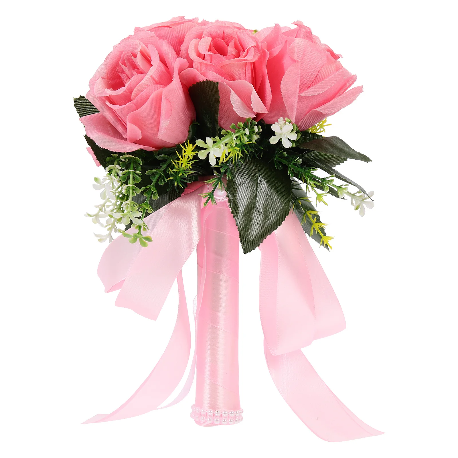 1PC kunstbloem trapsgewijze bruidsboeket voor huwelijksceremonie jubileum, parel bijgesneden strikboeket, kunstbloemen