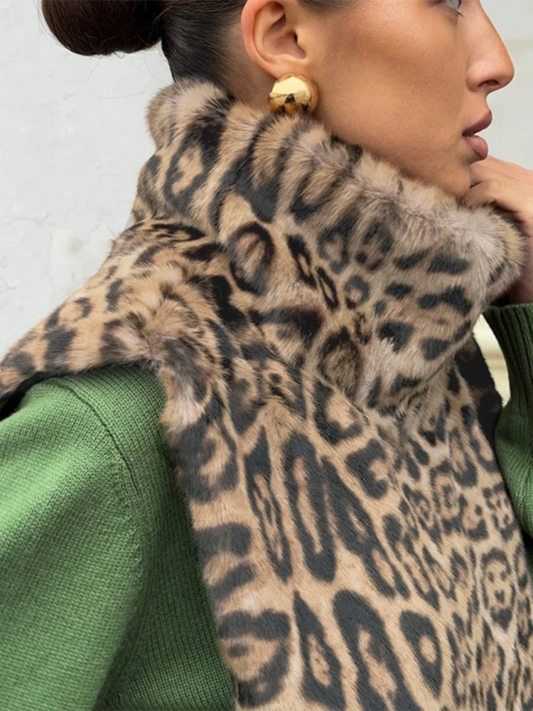 Dames luipaardprint namaakbont mouwloos vest 2025, herfstmode, hoge kraag, casual bovenkleding, winterkleding, dames bovenkleding