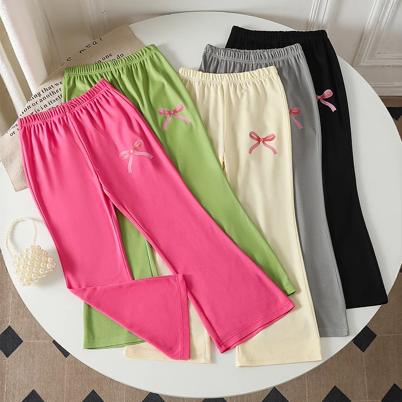 1/3-delige set lente en zomer nieuwe kinderboogprint meerkleurige bell bottom broek voor meisjes modieuze en schattige broek