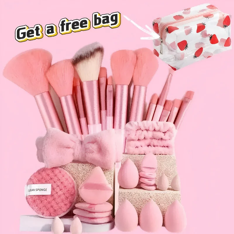 34-delige complete make-upborstelset met tas - professionele tools voor gecombineerde huid, ultieme kit voor beginners tot professionals, perfect Chr