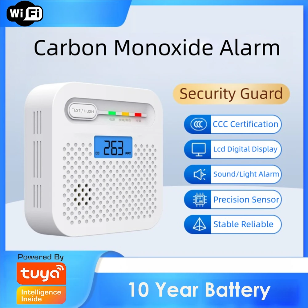 Arumny Tuya Smart WiFi CO-detector LCD Digitale koolmonoxidemelder Monitor-app Real-time waarschuwing 85dB sirene Huisbeveiligingssysteem