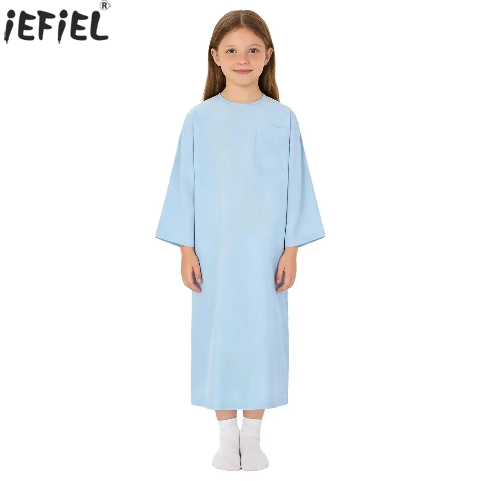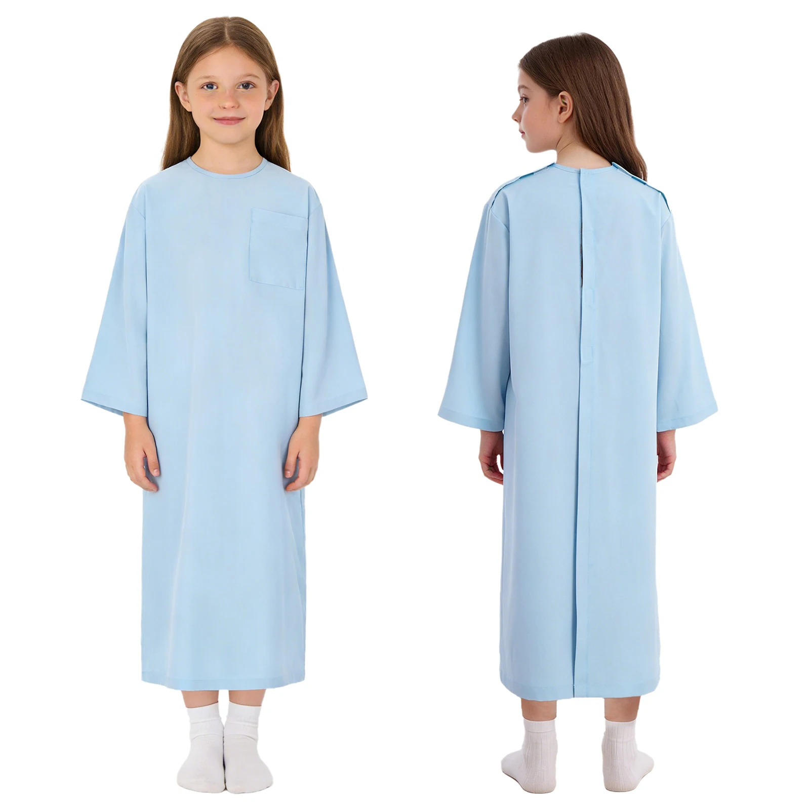 Adaptieve kleding voor kinderen met speciale behoeften, lange mouwen, split achter, klittenbandsluiting, voedingsjurk met zak voor ziekenhuis, pediatrische patiënt