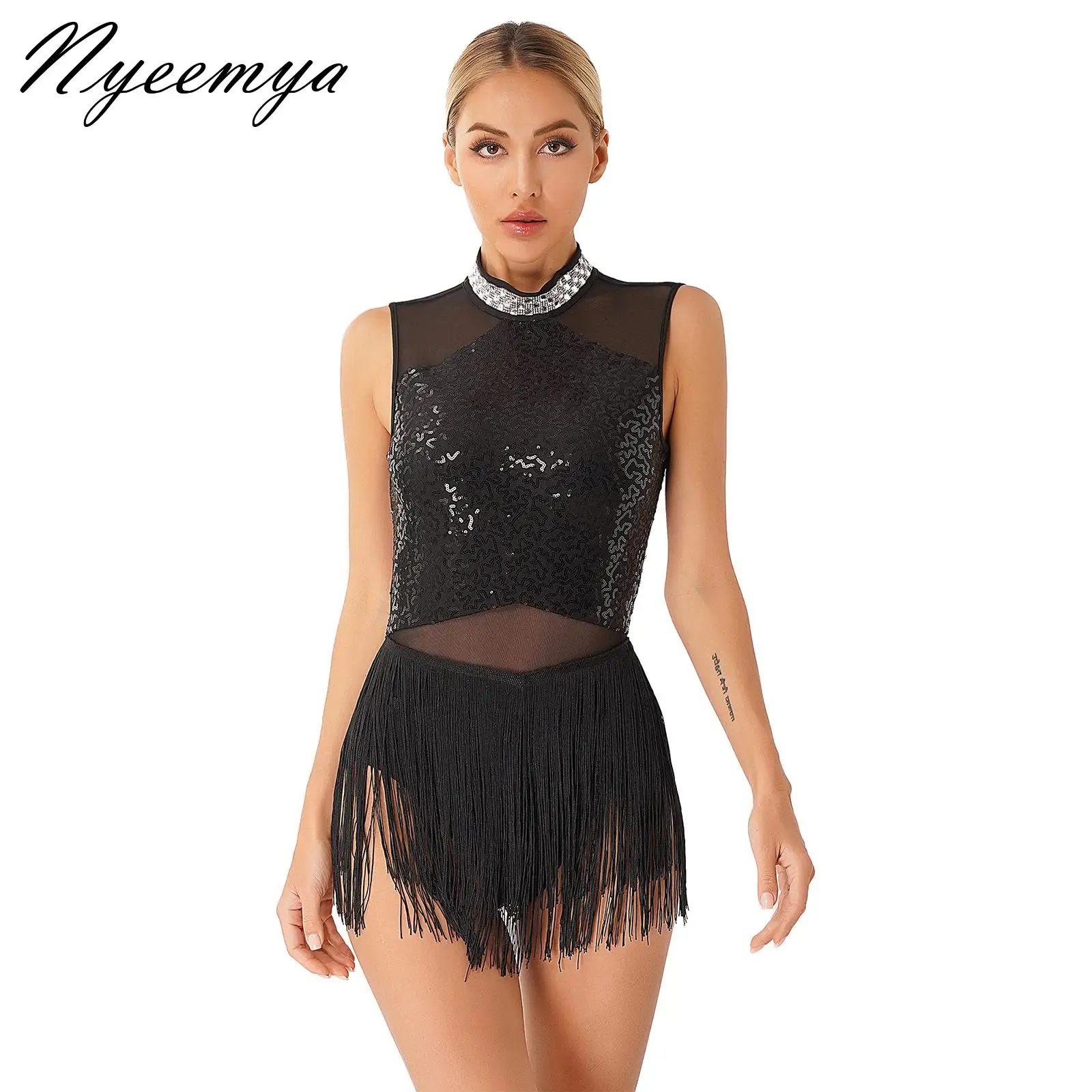 Mannen Latin Danskostuum Mesh Strass Dansshirts Kunstschaatsen Outfits Ballet Danskleding voor Danswedstrijd Prestaties