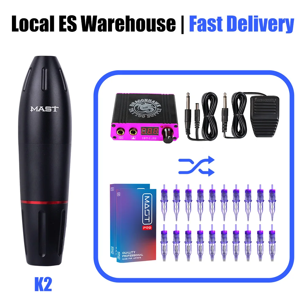 Mast K2 ES Magazijn Snelle levering Professionele tattoo-kits Rotary Tattoo Machine Cartridge Naalden Mini-voedingset