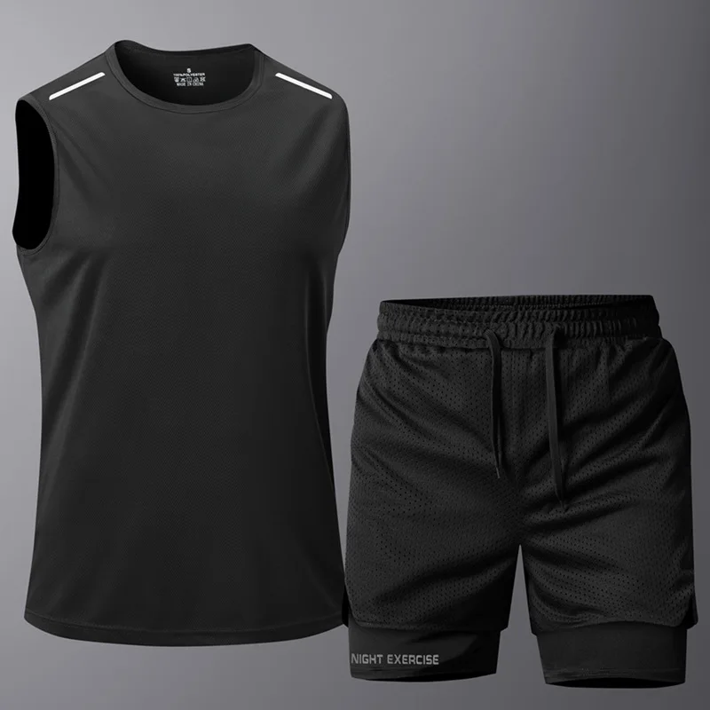 Zomertraining Mouwloos shirt+shorts 2-delige sets Bokssportsets Gymtraining Stretch Sneldrogende tops Hardloopsets