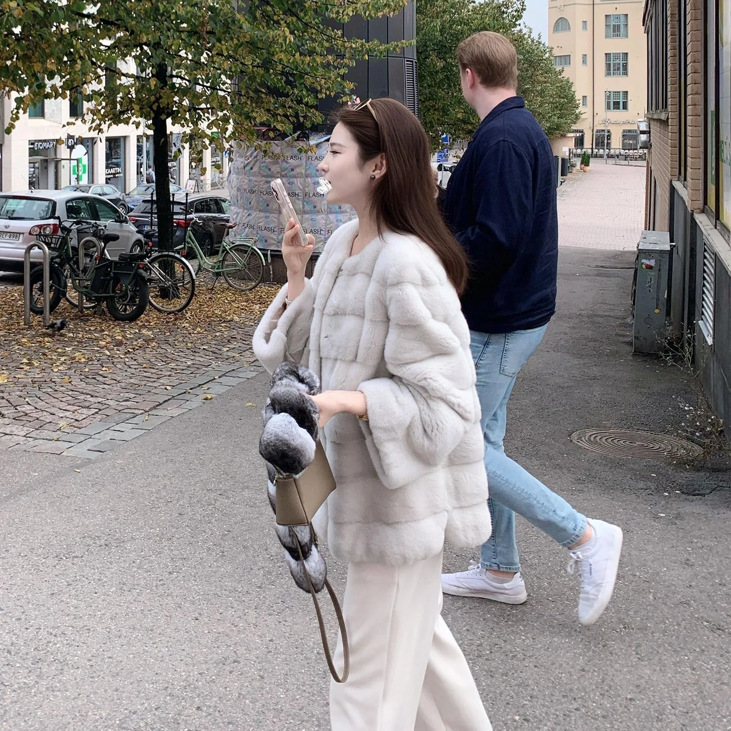 Eco-vriendelijke minkbontjas met V-hals, veelzijdig, modieus damesbuitenkleding, rechte zoom, warm voor de vroege lente