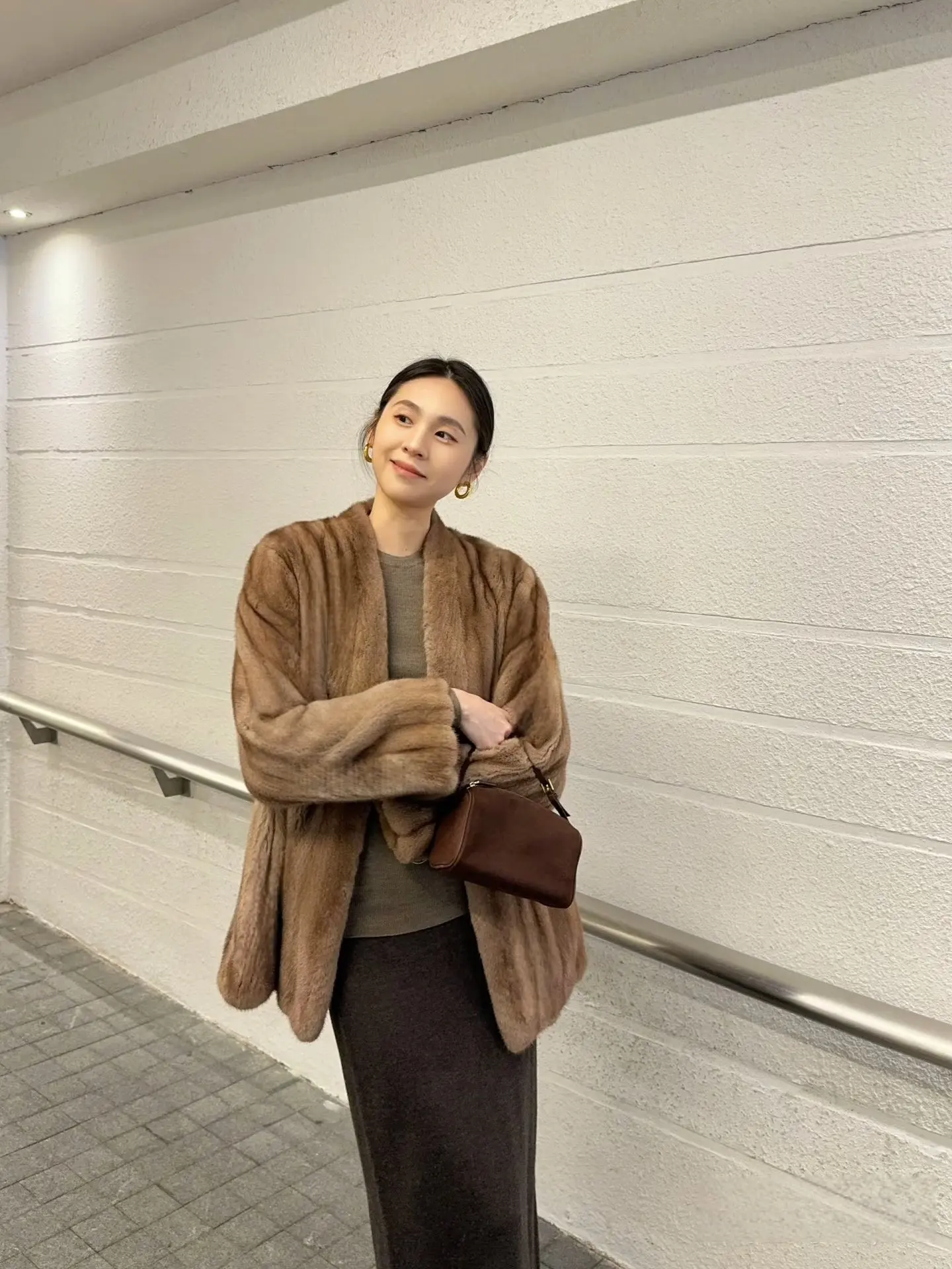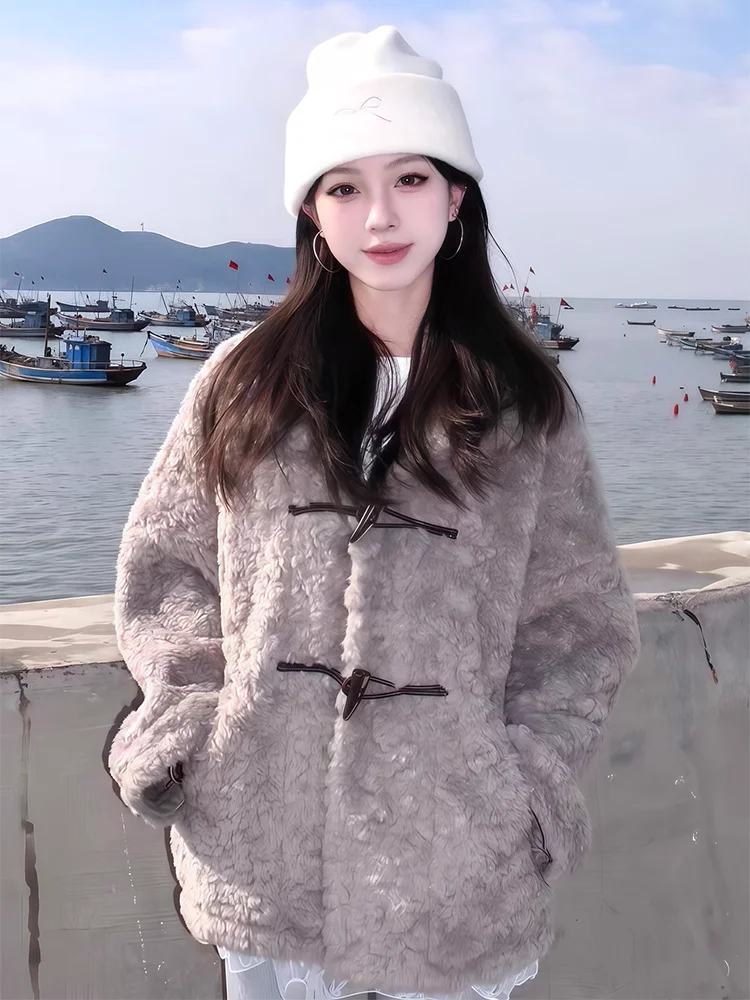 ey Retro bontjas met opstaande kraag Dames herfst winter nieuwe losse leren bontjas met knopen en geïntegreerde warmtebonttop