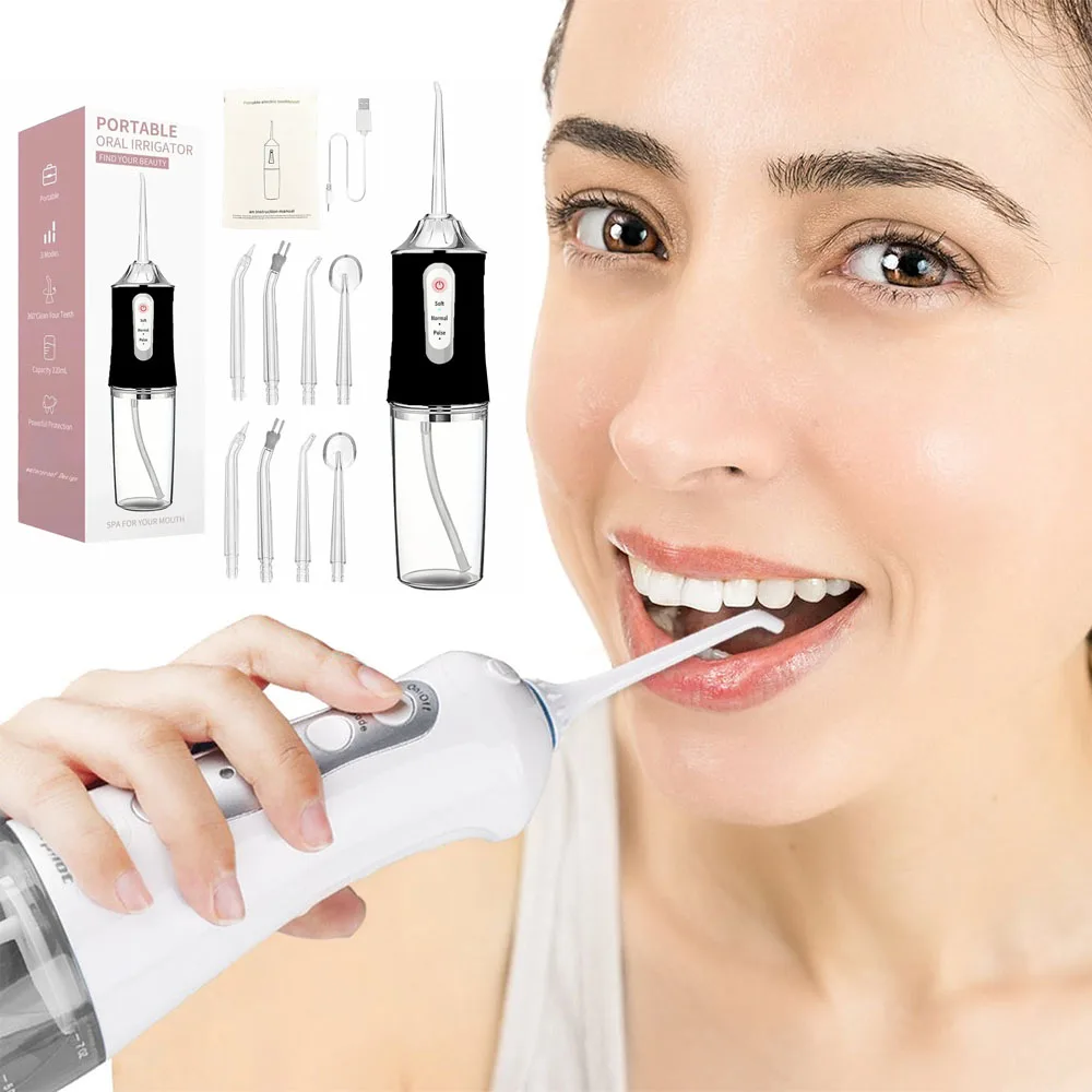 Draagbare slimme elektrische monddouche Draadloos USB oplaadbaar met 4 straaltips en 3 modi voor tandenreiniging en beugelverzorging