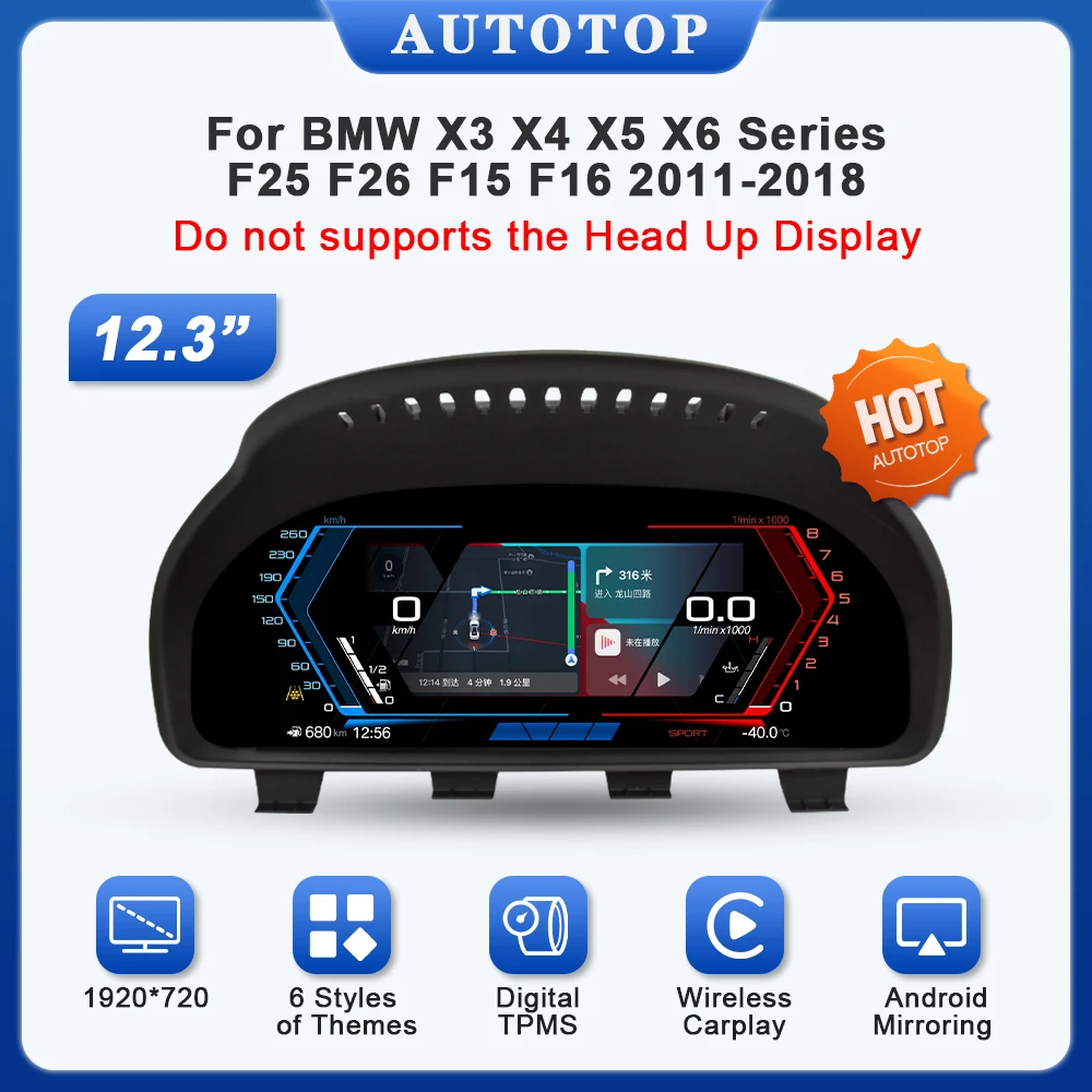 AUTOTOP 12.3 "Draadloze Carplay digitale Instrumentenpaneel Voor BMW X3 F25 X4 F26 X5 F15 X6 F16 2011-2018, Gauge Dashboard
