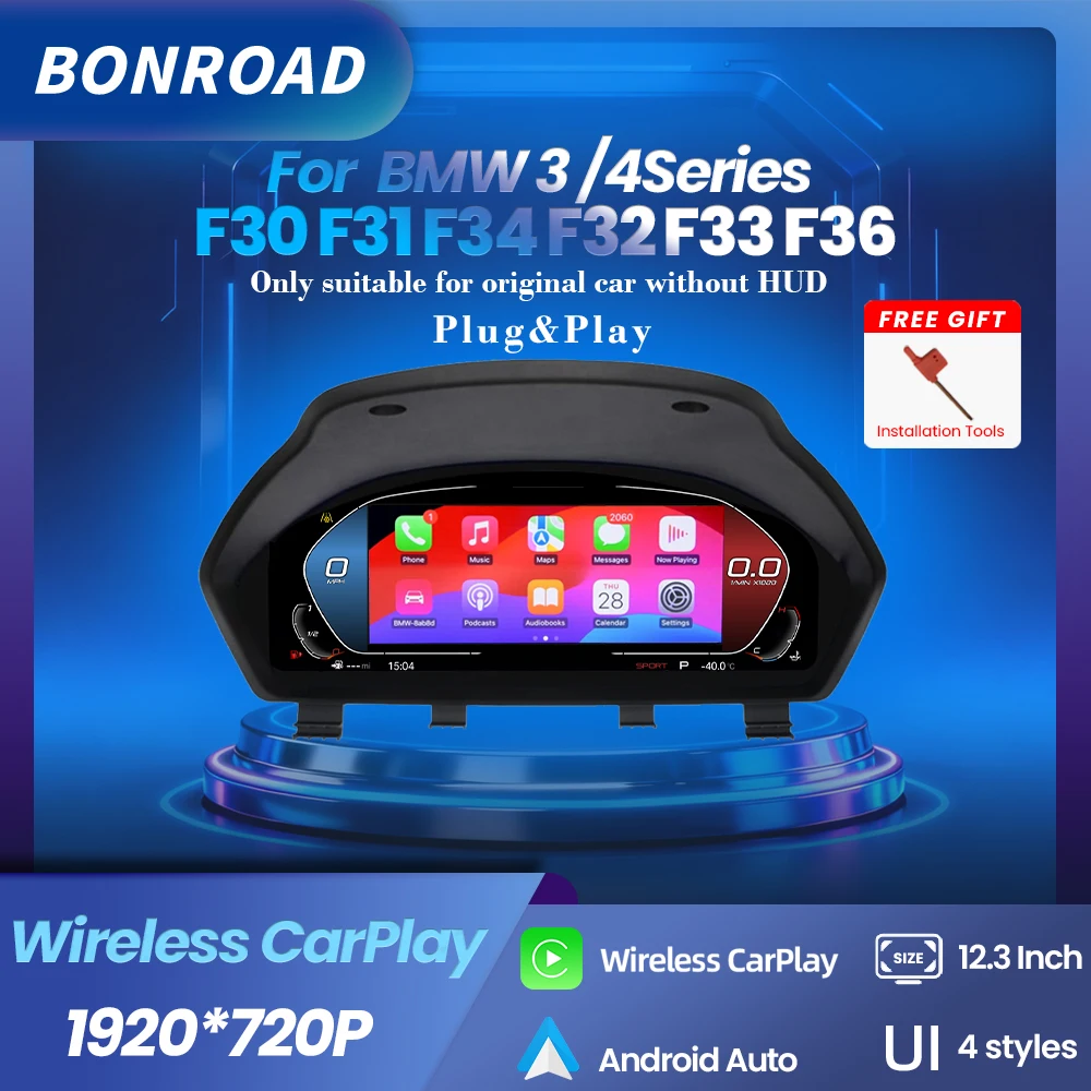 BONROAD 12.3” 1920*720P Draadloos Carplay Android Auto Digitaal Instrumentenpaneel Voor BMW F30 F31 F34 F32 F33 F36 Navi Dashboard
