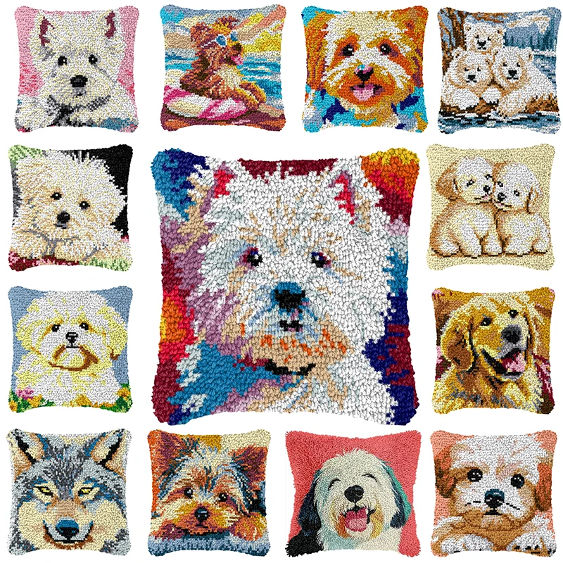 Leuke Hond Borduren Klink Haak Kit Kussen Dier Tapijt Kussen Klink Haak Tapijt Kits Knop Pad Pakket Smyrna Pakket DIY